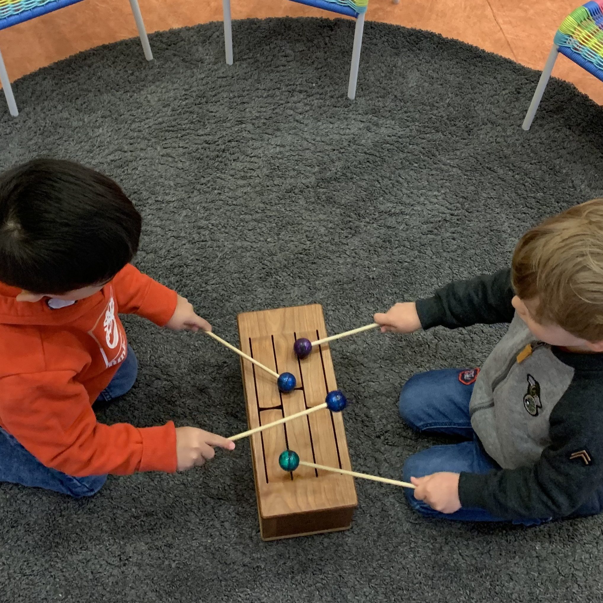 Ces jeux, codifiés selon la pédagogie Montessori, permettent à l’enfant d’appréhender les quatre paramètres musicaux (hauteur, durée, timbre, intensité) et de construire en autonomie un solide catalogue sensoriel.