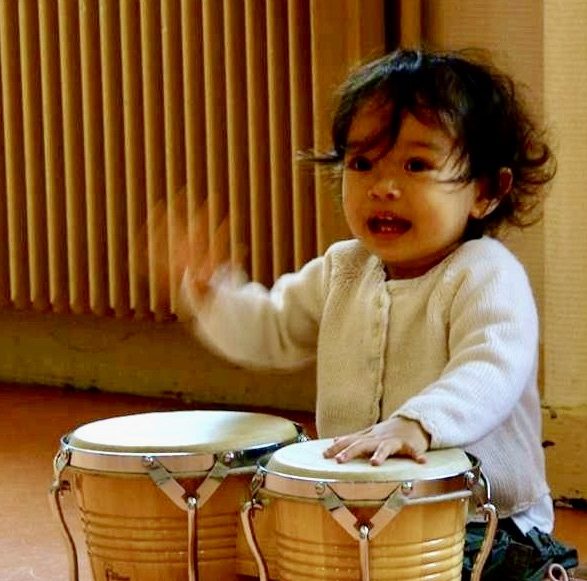 Comptines, chansons, chants en mouvement, rondes, marches, exploration de toutes les familles d’instruments à percussion (y compris mélodiques) en fonction de l’âge de l’enfant, de ses compétences et des périodes sensibles.